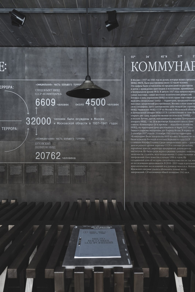 Небольшое помещение инфоцентра от бюро NOYD не просто знакомит посетителя с историей бывшего расстрельного полигона, но и вызывает глубокий эмоциональный отклик.
