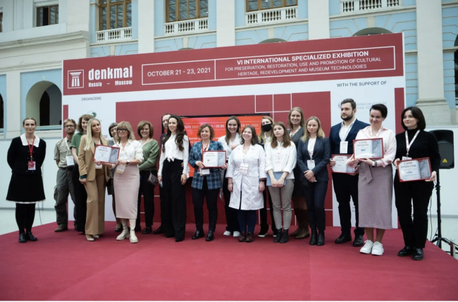 Номинация «Реставрация лепного декора и штукатурок»: 1 место – Милешин Никита, Дубинин Егор; 2 место – Спирин Степан, Кожевников Роман; 3 место – Чернова Екатерина, Степанова Анастасия. Лучший стенд «denkmal, Россия-Москва»