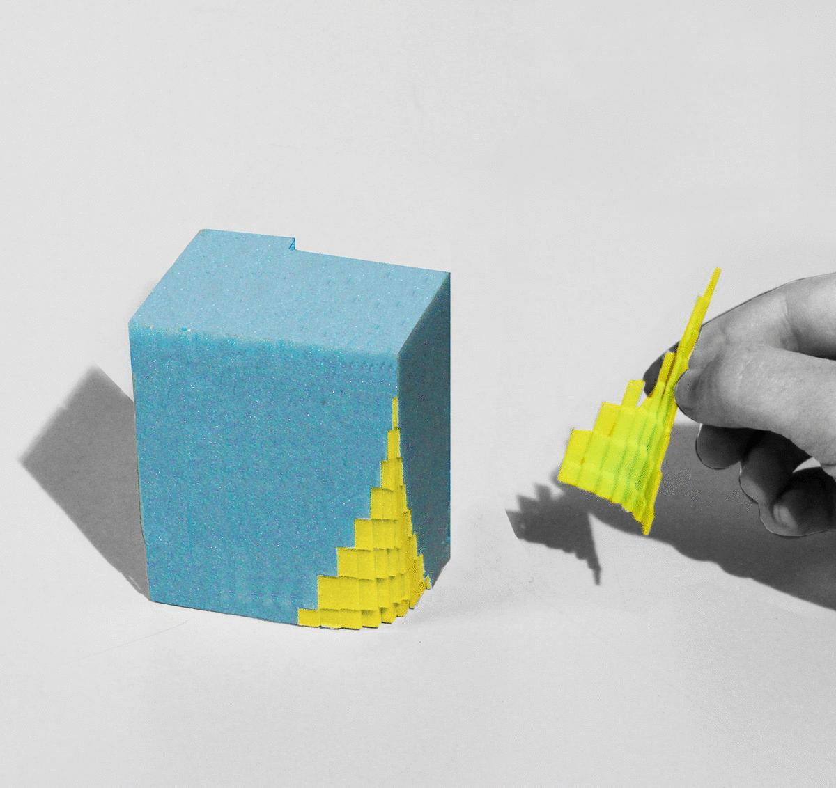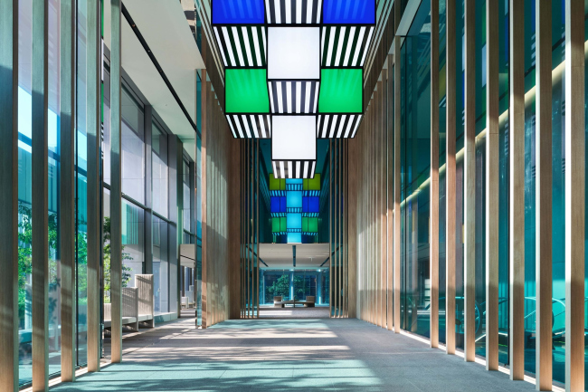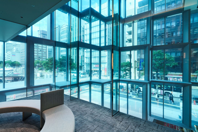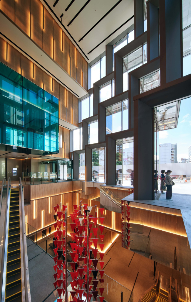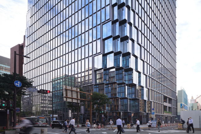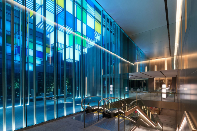 Чтобы раскрыть как правило замкнутое офисное здание наружу, архитекторы сделали его угол «подтаявшим», как у кубика льда: он отступает вверх, пропуская пешеходов, и при этом распадаясь на пиксели. Снаружи хорошо виден его шестиэтажный атриум, спускающийся ниже уровня земли и связывающий новое здание с существующим комплексом подземных переходов с торговыми площадями и станциями метро.