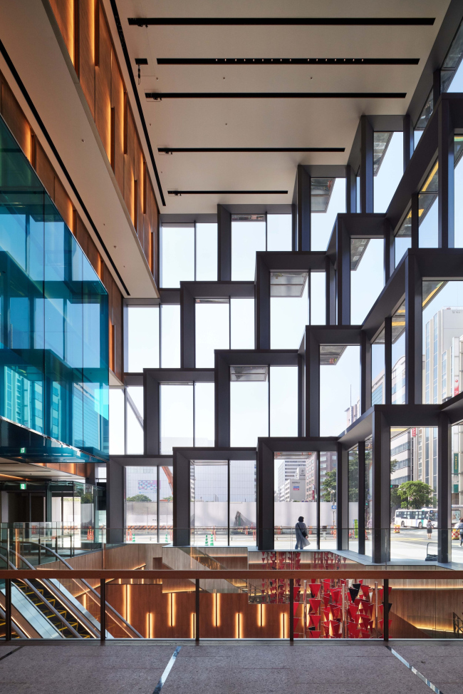 С верхнего, противоположного угла здания «кубик» тоже немного оплывает: там пиксели образуют террасы для отдыха офисных сотрудников с видами на город и реку Нака.Деловой центр ТэндзинФото © Tomoyuki Kusunose