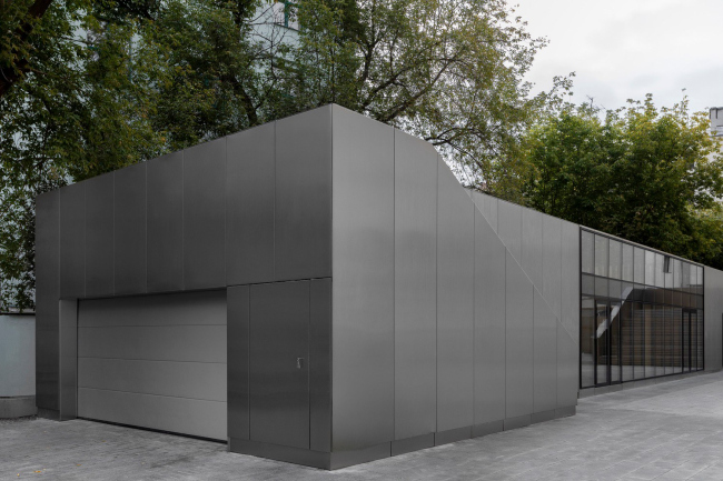 Работая над идеей оформления внешнего вида, создатели проекта отвели ведущую роль отделочным материалам. Наружные стены решили покрыть фасадными кассетами российской компании GRADAS. Выполненные из нержавеющей стали, они отражают на своей поверхности старинную конструкцию основного здания. Глянцевые плоскости в чередовании с перфорированными, дали неподражаемый эффект сочетания незыблемости и переменчивости. Эта особенность фасадных кассет как нельзя лучше передала замысел создателей проекта.