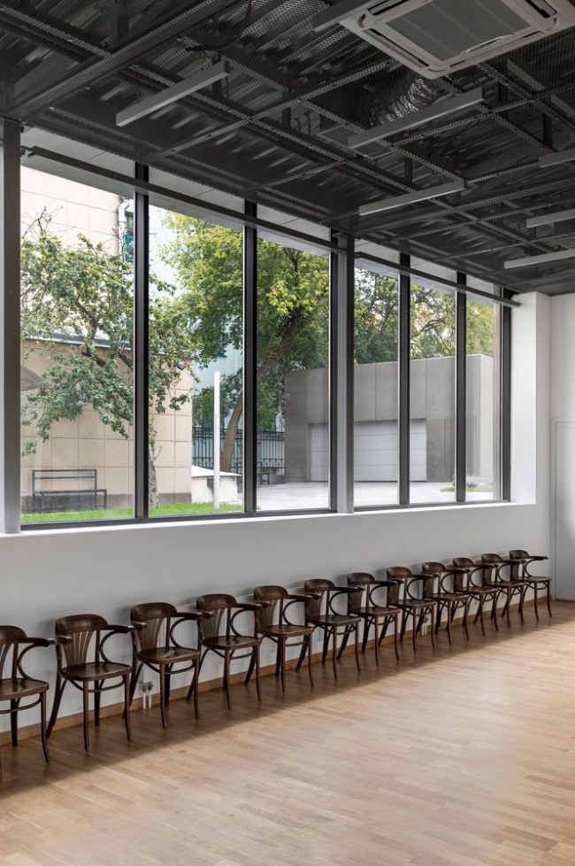 Совсем недавно запущенный двор ГИТИСа удивительным образом перевоплотился в новое пространство, где студенты будут учиться, репетировать и отдыхать. Материально-техническая база ГИТИСа всегда была весьма обширной. Теперь она пополнилась танцевальным залом, небольшими студиями для занятий и хозяйственно-бытовыми постройками, в которых будут храниться сценические костюмы.
