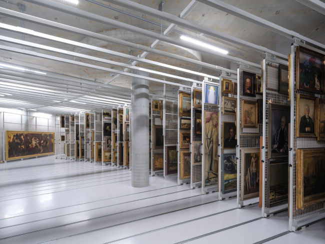 Фондохранилище не потеряет своей роли в 2028, когда вновь откроется музей. Такой запасник был ему очень нужен, так как изначально коллекции хранились в цоколе, где давно стало небезопасно и тесно, и перемещенные оттуда произведения оказались разбросаны по пяти складам в разных точках Роттердама, что было чрезвычайно неудобно с точки зрения логистики. К слову, в новом здании MVRDV можно арендовать пространство для размещения частной или корпоративной коллекции (около 1600 м2), которую – при согласии ее владельцев – тоже возможно открыть для публичного осмотра.