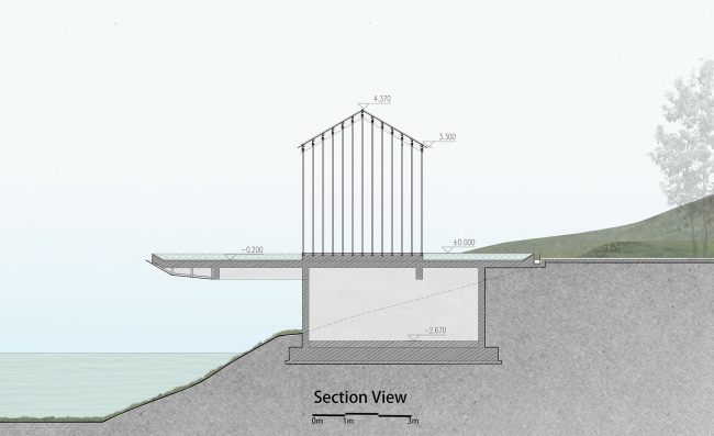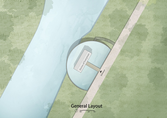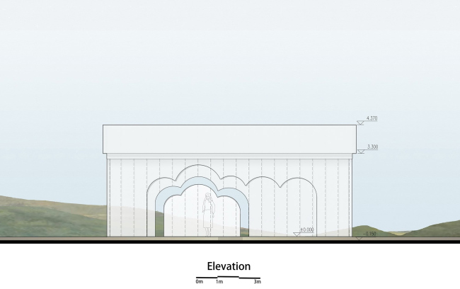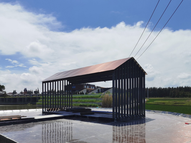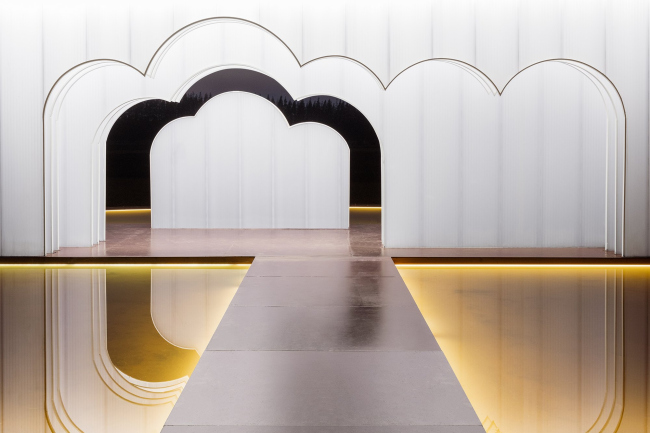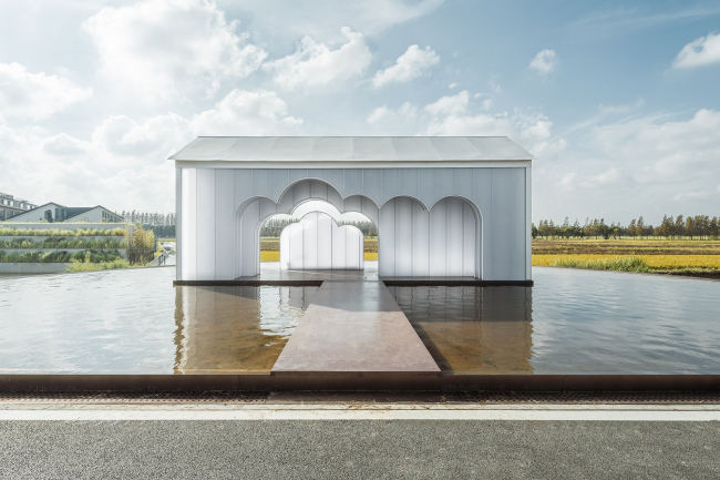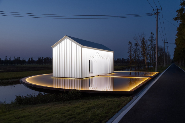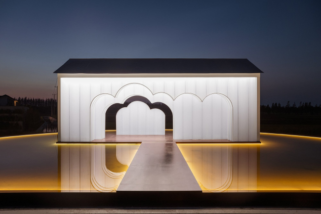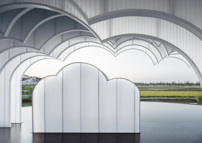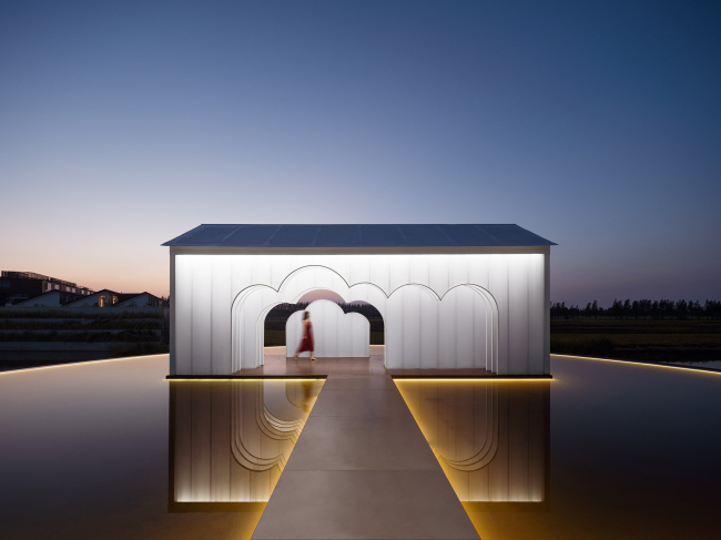 В центре размещен собственно павильон на стальном каркасе и с кровлей из листовой стали. Он состоит из 13 слоев полупрозрачного поликарбоната, который должен напоминать о молоке. Прорезанный в них мотив облака, впрочем, выбран почти случайным образом: это любимый узор дочери руководителя Wutopia Lab Юй Тина.«Святилище обычного человека»© Wutopia Lab
