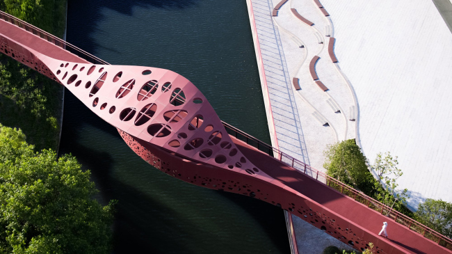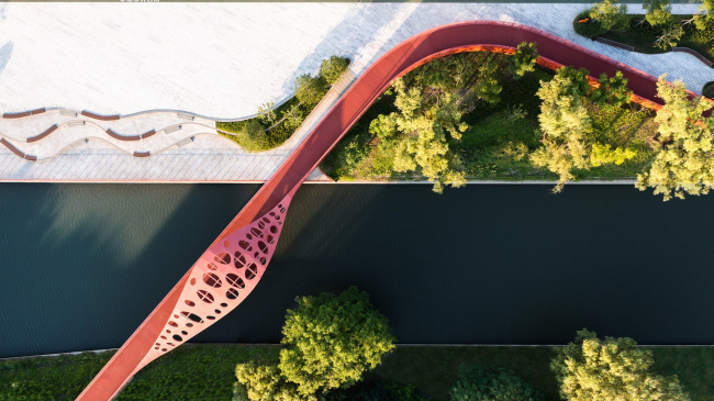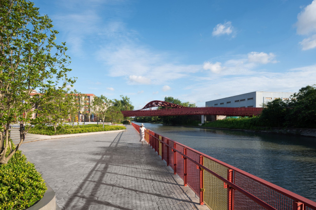 Теперь на протяжении 750 м создана рекреационная зона с тремя мостиками, которые делают район удобнее для пешеходов. Мосты, которые продолжаются на суше как галереи и дорожки, вдохновлены разнообразными формами .
