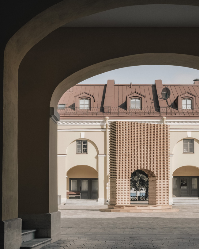 Первое, что видит посетитель, заходя во двор – вращающаяся арка. Изначально архитекторы придумали ее как бумажный проект для конкурса, заложив идею непостоянства мира, в котором «даже самый сакральный объект легко меняет направление». Но объект вписался в классицистическое пространство Никольских дворов как влитой – дополнив аркады двора и символизируя будущие преобразования, которые здесь еще произойдут.