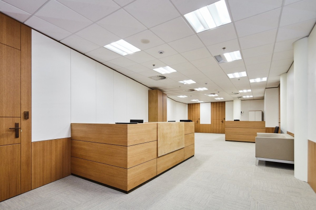 В переговорных для внутренних совещаний и встреч с партнерами были установлены ламинированные панели Perla dB с кромкой Tegular 15, ориентированные на высокую звукоизоляцию. Именно они позволяют сохранять конфиденциальность в ключевых зонах, где обсуждаются вопросы, составляющие в том числе банковскую тайну.