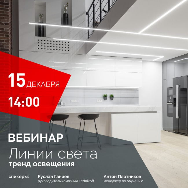 15 декабря в 14:00 встречаемся на вебинаре «Линии света – тренд современного освещения»