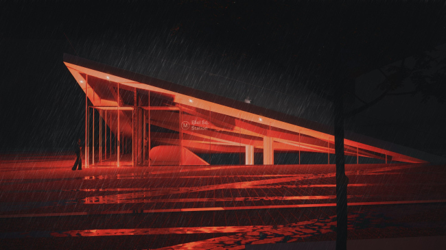Вторая часть, то есть собственно Привокзальная площадь, получит эффектное ромбовидное мощение из гранита (частично планируется повторно использовать камень из разобранной кладки), в которое будет интегрирована система сбора дождевой воды и зеленые зоны, в частности, планируется посадить много вишневых деревьев, местные травы и кустарники. Но главным объектом станет вход в станцию метро, встроенный как бы под приподнятый фрагмент каменного ковра. Его так и назвали – Kantti, то есть «край». Расположенный в самой центральной, собирающей все направления точке, этот выступ служит и смотровой площадкой, и своеобразным амфитеатром. Стеклянные вставки из переработанного стекла и здесь позволят пустить вниз естественный свет и создадут эффектное свечение в вечернее время.