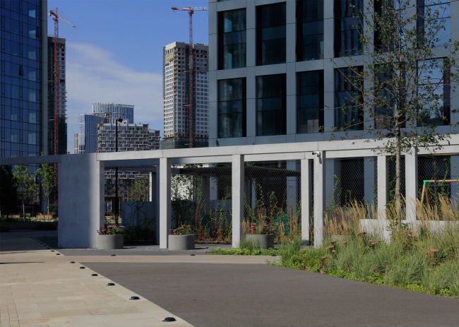 Британская компания Gillespies стала популярным автором проектов благоустройства дворов в крупных жилых комплексах Москвы. Эти авторы приглашены, в частности, для проектирования благоустройства ЖК Slava, который сейчас интенсивно строится на Белорусской по проекту венгерско-британско-московского архитектурного бюро Dyer. Проект благоустройства двора ЖК «Небо», построенного ТПО «Резерв» в Раменках, Gillespies реализовали в конце 2020 года, но рассказывать о нем начали только сейчас, когда все растения прижились. Нынешняя съемка – сентября 2021 года.