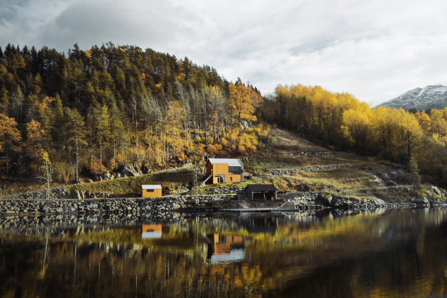 Двухэтажный дом площадью 142 м2, построенный на берегу норвежского фьорда по проекту небольшого бюро из Осло Rever & Drage, сочетает в себе черты двух типологий: фермерского дома и сарая. Вдохновение столичные мастера нашли в работах швейцарского архитектора Рудольфа Ольджати, питавшего огромный интерес к исторической архитектуре, и норвежского художника романтического направления Ханса Гуде, чья профессиональная жизнь служит для Rever & Drage примером медленного, но постоянного развития.