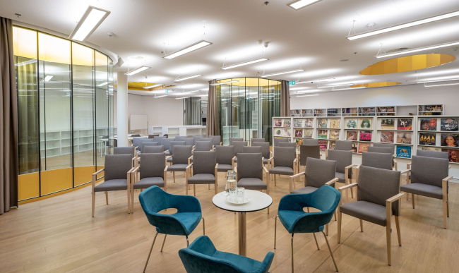 Верхнюю часть здания занимает мультимедийная библиотека и клуб с материалами по истории венгерской музыки. Также предусмотрена образовательная программа для детей и взрослых разной степени глубины.