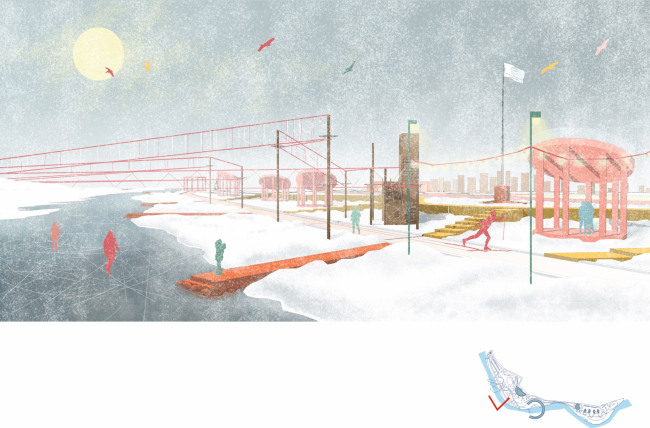 Мы находимся сейчас в самом начале пути, вдохновлены возможностью реального улучшения качества жизни горожан и сфокусированы на визуальном образе спорт-парка. Одновременно мы рассматриваем ряд других возможных локаций для размещения этого объекта. Но, конечно же, спорт-парк не будет функционировать только в теплое время года, он задуман как всесезонный объект. Зимой дорожки могут быть превращены в лыжные трассы с интересным рельефом, склоны моста превратятся в горки, крытое кафе, классы и другая инфраструктура позволят организовывать различные семинары и лекции, городские праздники и гуляния.