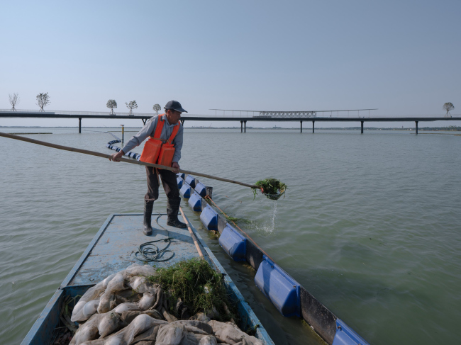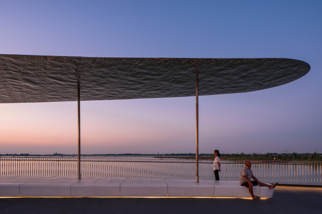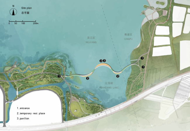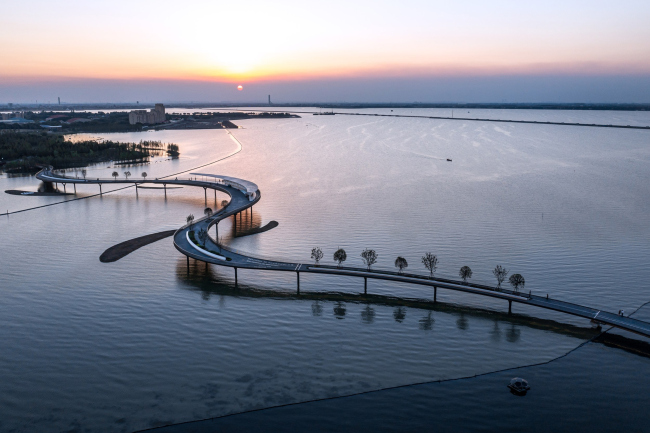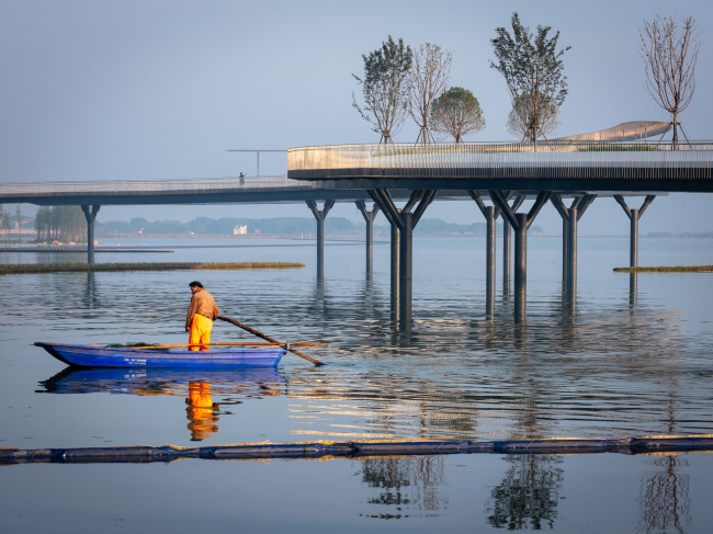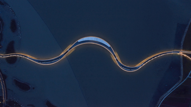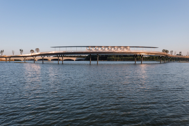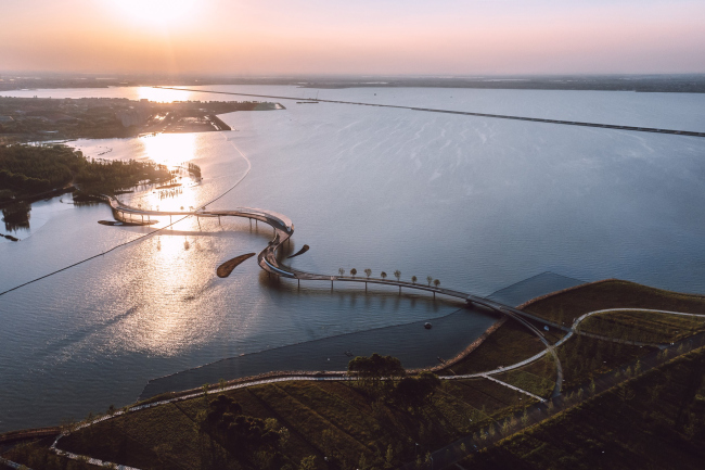 Пешеходный мост через озеро Юньдан, построенный по проекту , выполняет важную логистическую функцию: он соединяет две административные единицы Китая – провинцию Цзянсу и Шанхай.