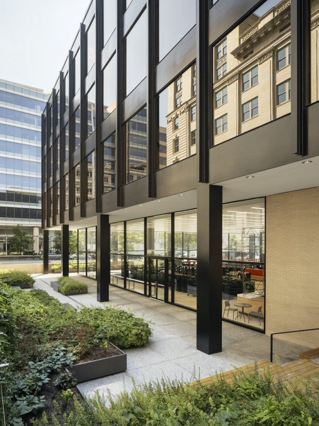 Необходимость увеличить площади библиотеки и намерение архитекторов надстроить историческое здание вызвали наибольшую обеспокоенность по итогам конкурса. Но в результате, возникший на крыше дополнительный стеклянный павильон абсолютно не заметен снизу и никак не искажает созданный Мисом ван дер Роэ объем. А вот открывающиеся с озелененной эксплуатируемой кровли виды позволяют лучше почувствовать и понять столичный город.Мемориальная библиотека Мартина Лютера Кинга – реконструкция© Robert Benson / фотография предоставлена архитекторами