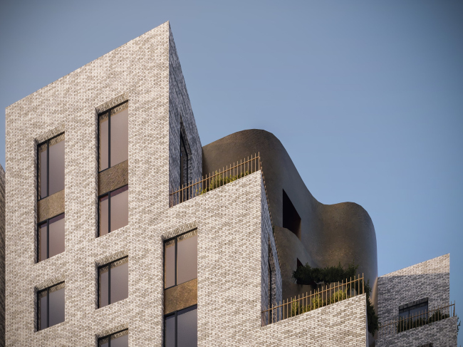 Динамичность архитектуры отражает характер насыщенной и захватывающей жизни современного человека. Это проект для активных и деловых людей с гибким образом жизни, которым помимо аренды проживания важно иметь комфортный коворкинг для удаленной работы, забежать на утреннюю йогу, подняться вечером в бар или же провести время в тихом саду.
