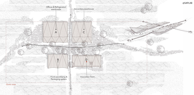 Бельгийская команда SAPLAB в составе Ширана Потье, Арно Гедефру, Мориса Демейера и Робина Фейса сосредоточили свое внимание на инновационном центре хаба. Для создания высокоэффективного здания, отмеченного местным колоритом, были использованы современные возможности стали. В проекте «Инновационная ферма» сочетается функциональность инфраструктуры сельскохозяйственной производственно-сбытовой цепочки и зоны отдыха для психологической и физической релаксации работников.