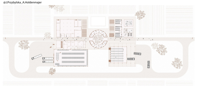 Помимо тщательно продуманного размещения различных элементов для оптимального обеспечения производственных процессов, проект учитывает потребности людей, давая им возможность осуществления разнообразных социальных взаимодействий на внутригородской улице с выходом на уютную городскую площадь.