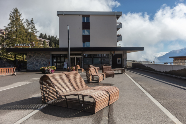 Для этого проекта мы по индивидуальному заказу разработали и изготовили уникальные шезлонги и скамьи. Общая отличительная черта – широкие спинки для отдыха (не забываем, что это курорт), благодаря чему изделия становятся очень комфортными.