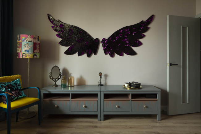 У нашей студии два направления деятельности: декорирование/кастомизация мебели и разработка проектов жилых пространств. Умение красить и переобивать мебель очень сильно помогает в работе нам, коллегам-дизайнерам и нашим заказчикам. Из ярких проектов – квартира Даши Соболевой, в которой мы перекрасили много мебели.