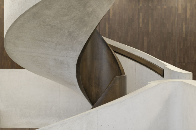 В интерьерах широко использована темная древесина каштана и архитектурный бетон.Центр наук о Земле и окружающей средыФото © Brigida Gonzalez