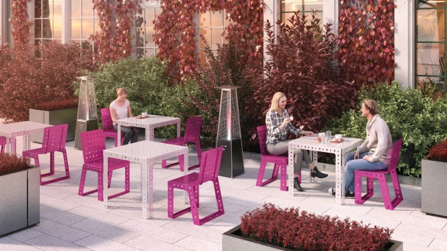 Столы и стулья Kanvas – новая линейка в коллекции Karim x Punto. Karim Rashid в очередной раз удивляет уникальным дизайном – мебель из оцинкованной стали с порошковым покрытием как нельзя лучше дополнит современные общественные пространства, уличные веранды, парковые зоны и дворовые территории.