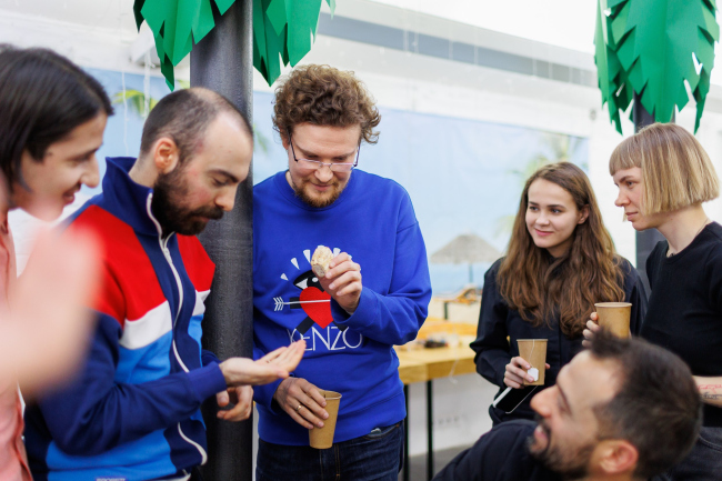 Одной из целей спецпроекта NEXT на выставке АРХ Москва 2022 года стало формирование сообщества – в бюро любят слово «коммьюнити». GAFA организовали несколько встреч, которые приняло бюро Сергея Никешкина «Крупный план» – на них отрабатывались концепции. Кажется, что ничего необычного, но погружение в тему проекта оказалась куда серьезнее, чем если бы бюро работали поодиночке, соревнуясь в формальном конкурсе. Участники с самым разным опытом и багажом презентовали свои идеи и подходы, смотрели друг на друга, запускался живой обмен, само собой приходило понимание, где можно и нужно улучшаться. И работы переделывались по несколько раз, с каждым разом идеи формулировались четче. Коллаборация с МАРШ, куда участники пришли поговорить со студентами на волнующие молодых архитекторов темы, подпитала работу еще больше.