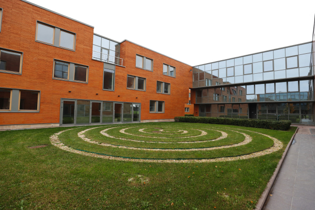 В проекте использовалось стекло SunGuard Super Neutral 70/41, которое помогает минимизировать потребность в искусственном освещении и способствует снижению нагрузки на охлаждение помещения летом и отопление зимой. Такое остекление в сочетании с наклонными стенами и отделкой деревом удачно вписывается в ландшафт, а территория становится похожа на «парковые павильоны». Недалеко от кампуса находятся такие известные архитектурные и исторические объекты России, как музей-заповедник «Петергоф» и Дворец Конгрессов.
