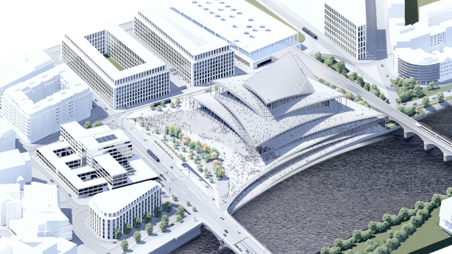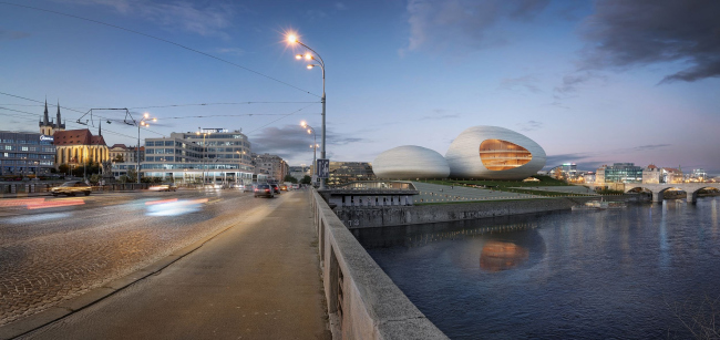 В конкурсе на проект здания Влтавской филармонии в Праге победило бюро BIG. Публикуем работы всех призеров.