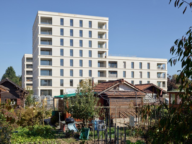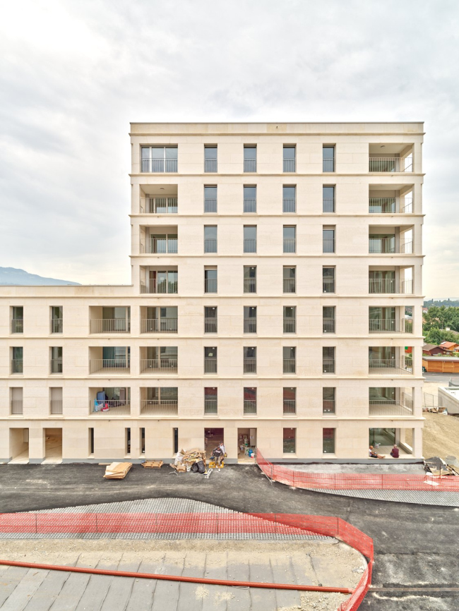 Комплекс доступного жилья под Женевой по проекту бюро Archiplein и Perraudin Architecture не использует бетонную несущую конструкцию: главным материалом стали блоки натурального известняка.