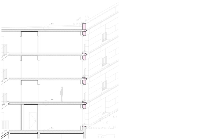 Но особенность новостройки заключается не в ее программе. На этом примере архитекторы исследовали эффективность натурального камня как основного строительного материала для бюджетного жилья в Швейцарии. Был выбран известняк из трех французских месторождений: он использован в том числе для несущих конструкций, которые оставлены тактильными, с естественной фактурой, следами пилы каменотеса, окаменелостями и т. д.