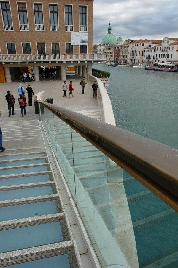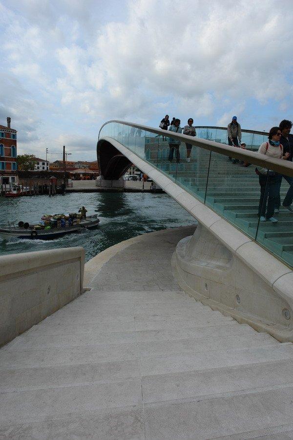 Еще одной выставочной единицей Биеннале можно назвать новую постройку Дэвида Чипперфильда – участок 23 на городском кладбище Сан-Микеле. Это сооружение, представляющее собой двор-колумбарий, открылось в прошлом году, но большинство посетителей венецианской архитектурной выставки увидели его впервые. Сдержанный комплекс из темно-серого базальта скрывает внутри четыре открытых двора, названных по именам евангелистов. Центр каждого засажен цветами и кустарником, стены же разделены на белые мраморные квадраты, предназначенные под захоронения.Мост КонституцииФотография Нины Фроловой
