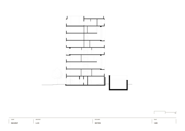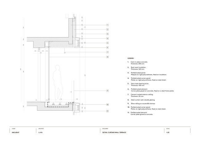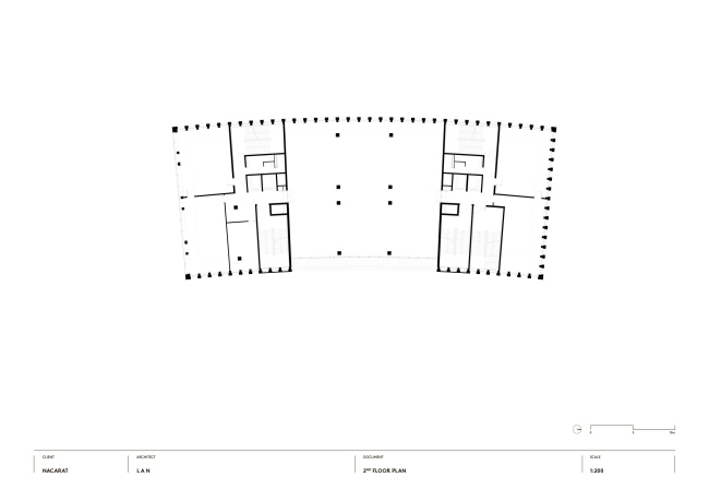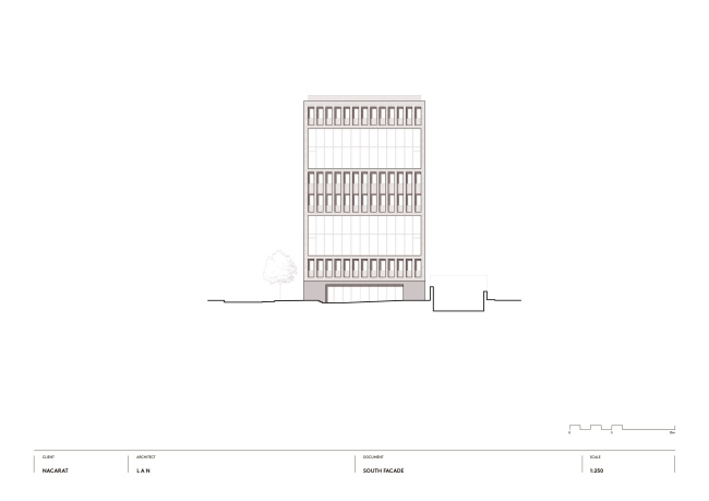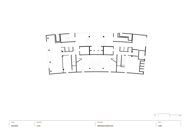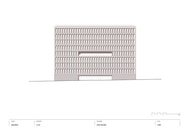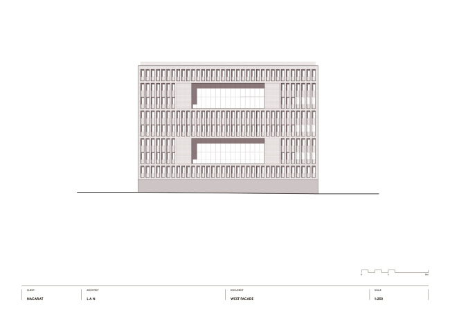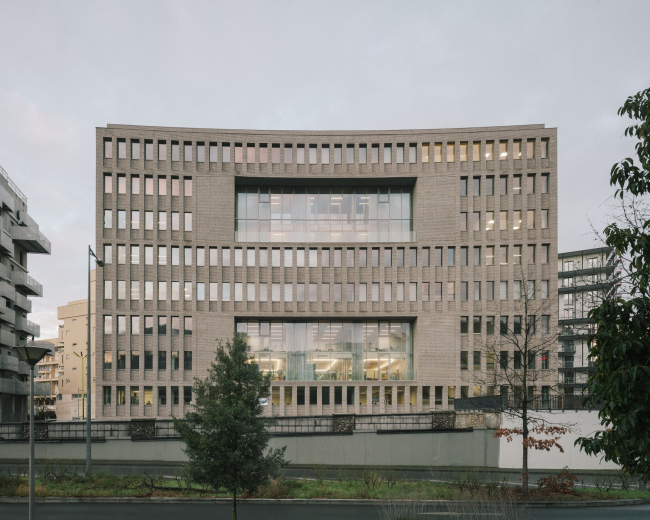 Ответом архитекторов стал сдержанный, хорошо «артикулированный» проект, с чувством ритма и масштаба. Объем постройки слегка искривлен, повторяя траекторию двух параллельных улиц, между которыми он «зажат». На фасадах равномерно сменяют друг друга кирпичные и стеклянные полосы, причем в зависимости от угла зрения здание кажется «каменным» или прозрачным. При движении в автомобиле кирпич выступает на первый план, для пешеходов заметнее стекло – его обширные поверхности позволяют заглянуть внутрь и раскрывают жизнь вуза городу.