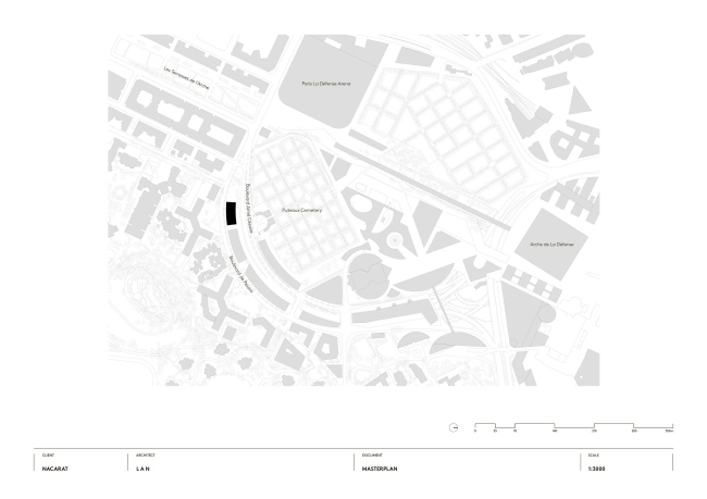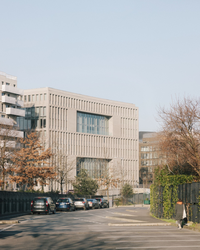 Новое здание института стало частью плана реконструкции одного из краев делового района, что поместило его в сложный контекст: рядом для студентов-музыкантов конца 1970-х годов и разноцветные , чуть дальше – небоскребы и Большая арка, а также стадион Кристиана де Портзампарка. Мимо проходит оживленная магистраль, но пешеходов тоже немало.