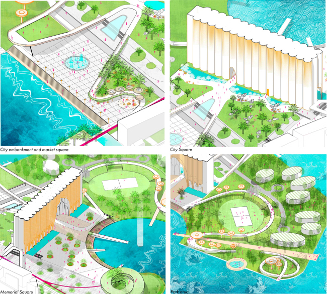 Проектируемый район разрабатывается как испытательный и демонстрационный полигон для будущего циркулярного города и порта – он обеспечивает вдохновляющую образовательную и экспериментальную среду. Основная идея – «город в саду»: район, где природа и цивилизация сливаются вместе, обеспечивая жизнь и среду иного качества. Территория превратится в оживленный район, в котором новая промышленность сочетается с общественными пространствами и жилыми кварталами. Район внесет важный вклад в привлечение и удержание людей, необходимых для формирования города и порта будущего. Концепция развития прибрежных территорий Бейрута© Ворончихина Анастасия