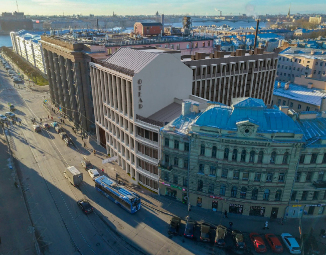 Гостиничный комплекс на площади Ленина. Панорамный вид в створе Финского переулка