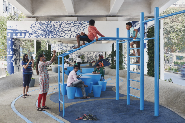 MVRDV совместно с индийским бюро StudioPOD превратили заброшенные пространства под одной из эстакад перенаселенного мегаполиса Мумбаи в завлекательную зеленую площадку для всех жителей района.