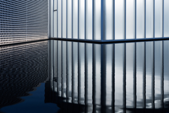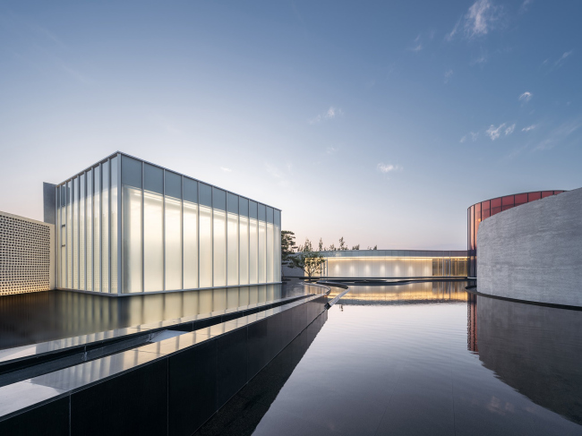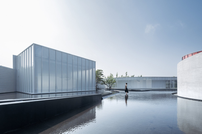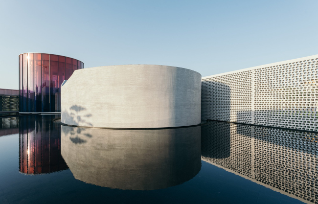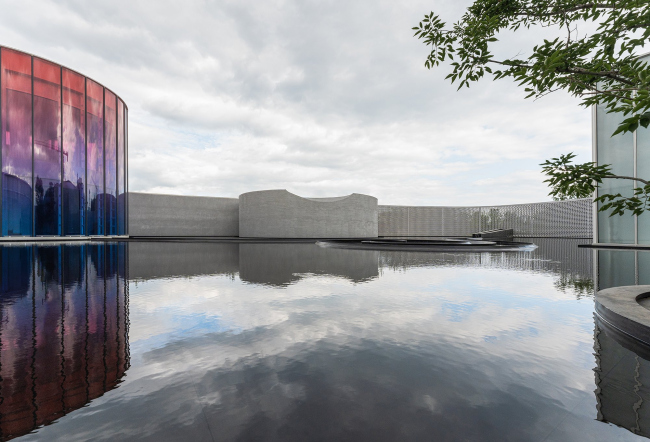 Музей представляет собой композицию из нескольких объемов во внутреннем дворе, заполненном темным зеркальным водоемом (обилие воды тоже взято из пейзажа). Он окружен стеклянными галереями и ажурными стенами из армированного кирпича сложной формы.