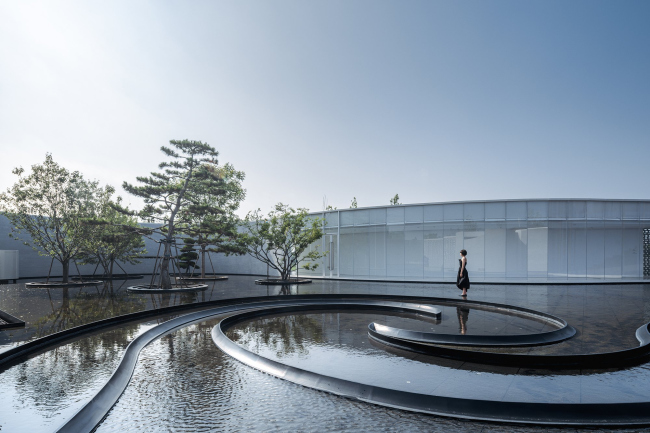 К этим деревьям можно подойти и по мелкой воде, где проложены завитки дорожек. В отличие от средневекового свитка, где изображены растения южной области Цзяннань, архитекторы выбрали для своего проекта шесть северокитайских видов: сосна, вяз, кипарис, клен, дуб и каркас китайский.