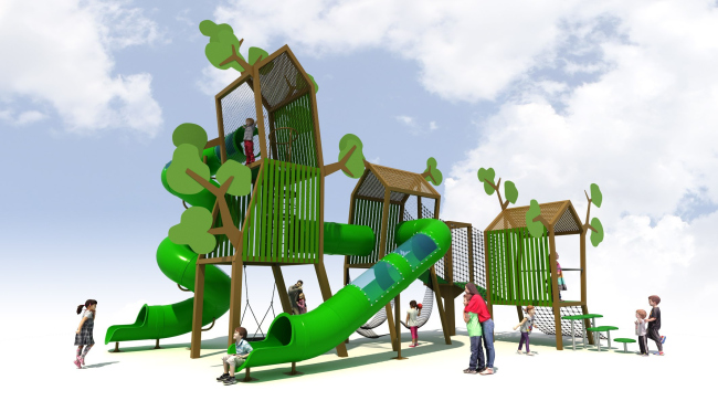 Во второй категории – близкие детям сказочные образы. «Эльфийская деревня» и представляют собой домики со множеством укромных уголков, соединенных переходами, горками и ступенями. «Дракон» впечатляет своими формами и позволяет насытить пространство площадки наиболее разнообразными игровыми сценариями.