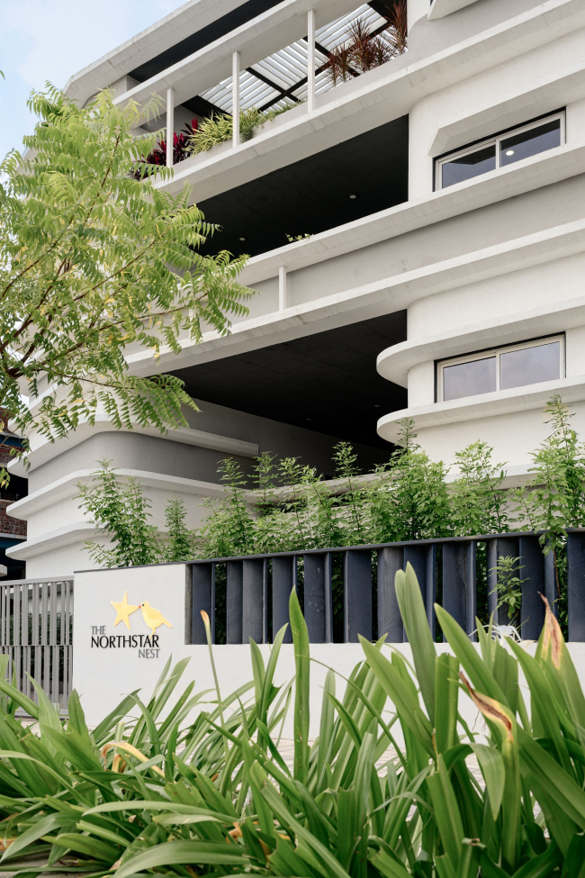 Детский сад Northstar Nest построен на узком участке, вытянутом в направлении запад – восток. Здание заняло обращенный к улице восточный край, западная часть превращена в сад. Из-за ограничений участка постройка достаточно компактна. Кроме того, речь о совсем новом районе, поэтому вокруг пока нет зданий и создаваемой ими тени, поэтому защита от солнца была крайне важна.