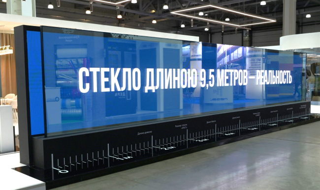 Переработка такого стекла с напылением, как и его производство – уникальная для российского рынка компетенция. Так, компания Modern Glass стала первым партнером, который изготовил стеклопакет длиной 9,3 метра с новым стеклом. Его Larta Glass продемонстрировала на своем стенде на выставке MosBuild 2023.