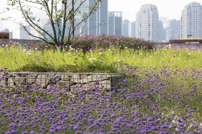 На территории вокруг бывшего канала сохранились руины старых фабричных зданий. Отдавая им должное, архитекторы здесь построили стены из закрытых стальной сеткой бетонных блоков. Вокруг разбит «Луг преемственности», где можно наблюдать за сезонными переменами в природе.