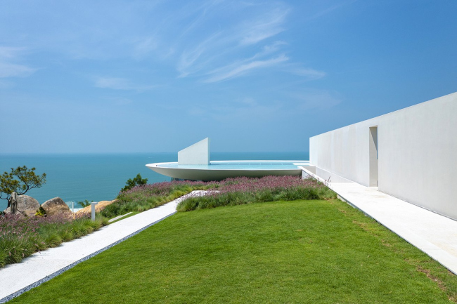 Водоем на кровле у библиотеки в провицнии Гуандун сделал ее «подводной»: читатели как будто ныряют туда за книгами. Авторы проекта – 3andwich Design / He Wei Studio.