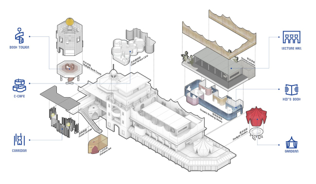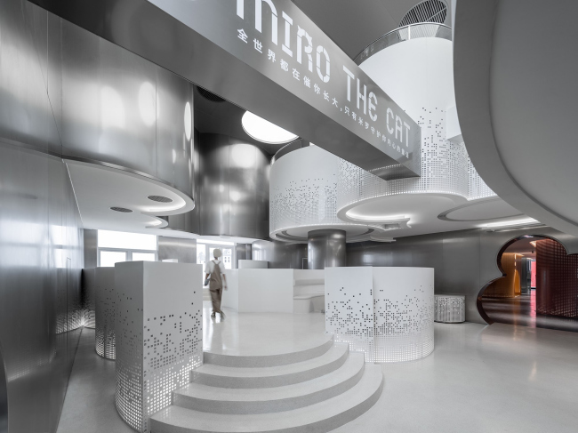 Концепция проекта основана на анимационных фильмы о приключениях кота Миро, созданных итальянской художницей Кристиной Ластрего. Отметим, что это не первый книжный, спроектированный архитекторами Wutopia lab: ранее мы писали про радужный магазин в Сучжоу и белый – в Сиане.