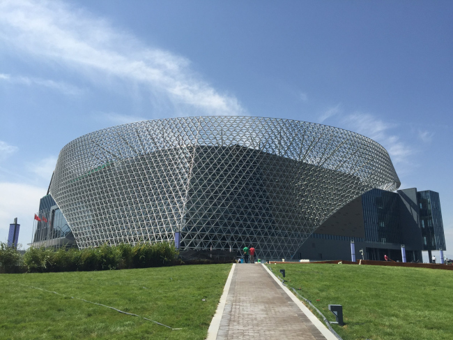 Возведенное в провинции Нинся на северо-западе Китая для проведения ежегодного Китайско-арабского экономического и торгового форума здание знаменует собой соединение местной китайской культуры и исламской идентичности – в провинции проживает более 10 процентов 20-миллионного мусульманского населения Китая – и символизирует сотрудничество между двумя мирами.