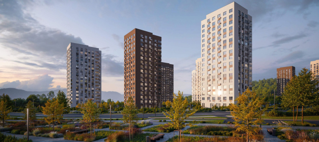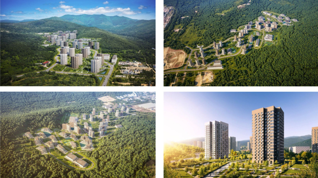 Расположение на этих ярусах домов, которых будет чуть больше 40, Институт генплана Москвы уточнял в соответствии с ограничениями участка – сейсмикой, грунтовыми водами, оползневыми процессами, сложной инсоляцией. «Лесной сад» располагается у равнины и состоит из нескольких кластеров башен под 17 этажей. «Ступени» – это многосекционные дома-пластины по 12 этажей. «Сад камней» – дома с более сложным силуэтом и акцентами до 12 этажей. Таким образом, с повышением высоты рельефа этажность снижается, и максимальное количество квартир получает виды на сопки, долины, лес и город.