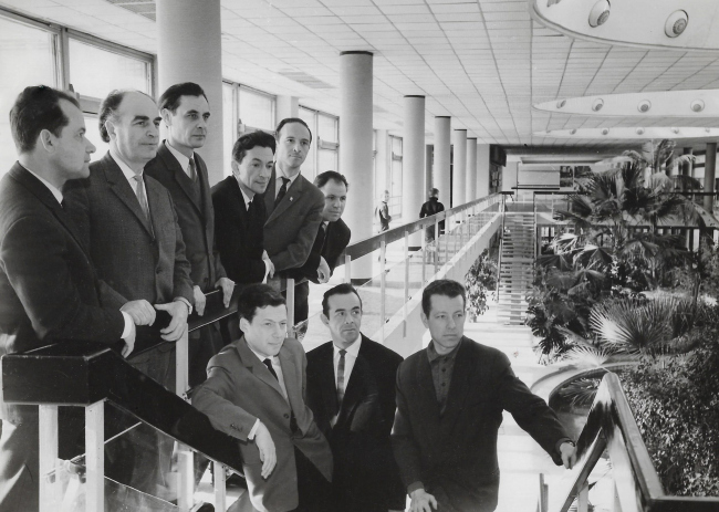 Авторы проекта Дворца пионеров на Ленинских горах в атриуме дворцаФотография © Наум Грановский