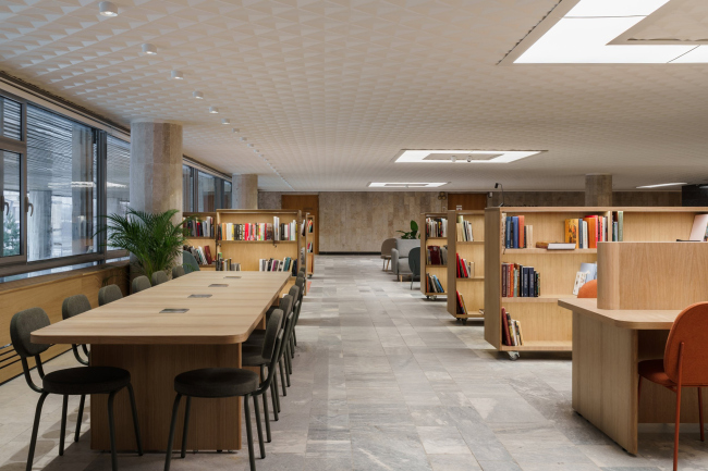 «Хора» продолжает «библиотечную» серию: по проекту бюро пространство антресольного этажа Западного крыла Новой Третьяковки преобразовалось в книжную гостиную. Сюда можно прийти почитать или поработать без билета или абонемента.