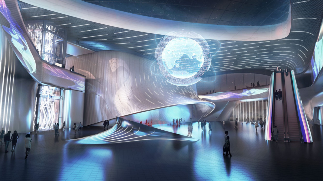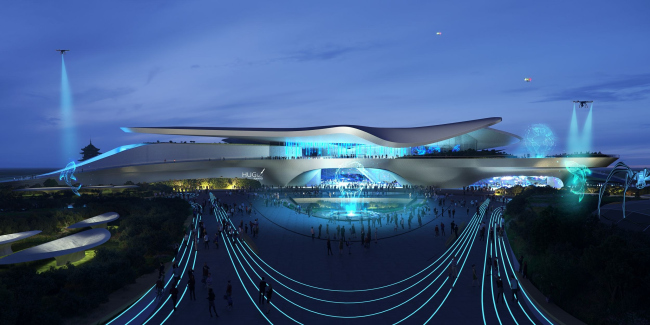 На площади 59 тыс. м2 разместятся выставочные пространства, театральный и конференц- залы, атриум с остекленной стеной, сквозь которую будет видна гора Силиншань.